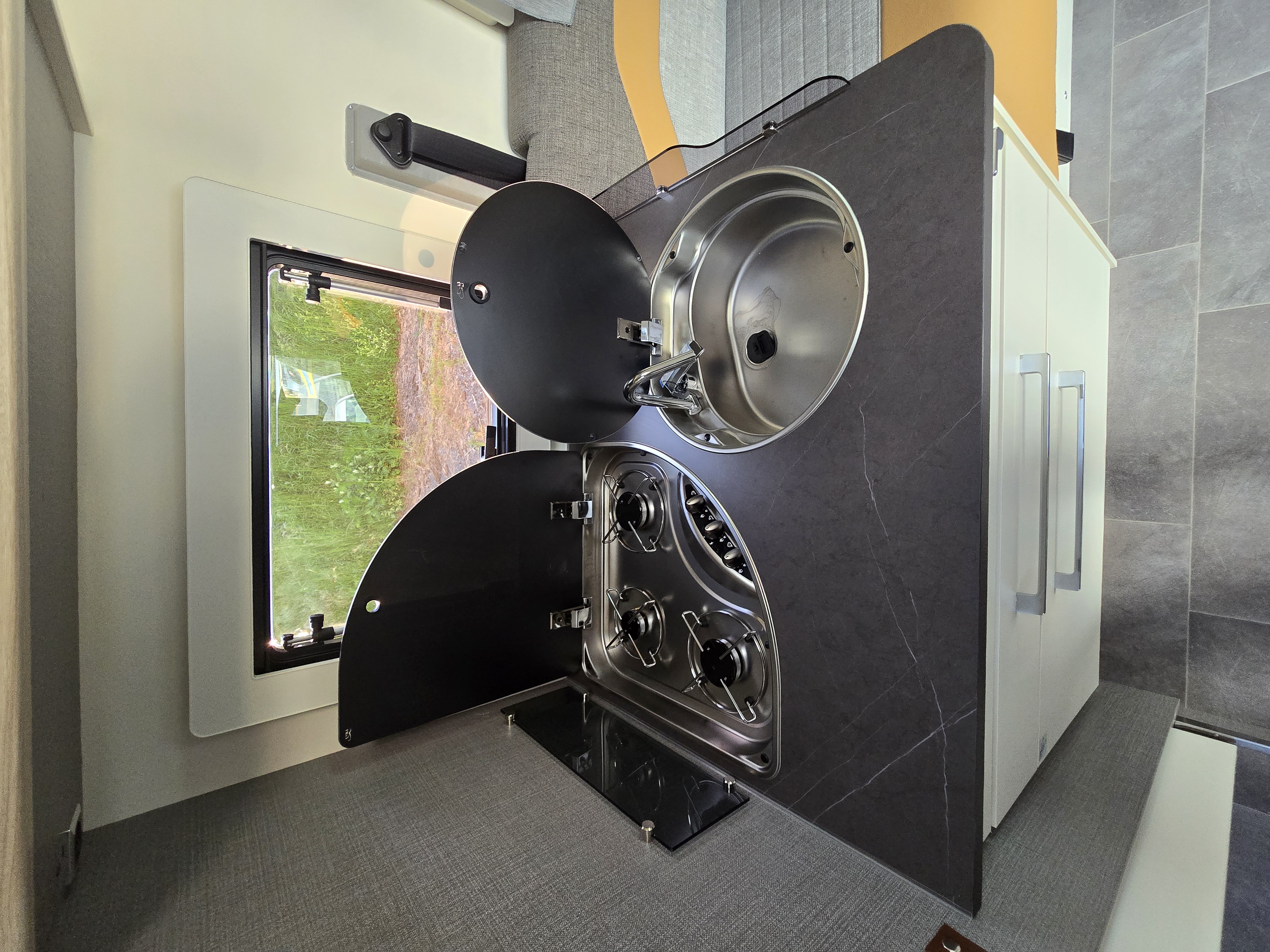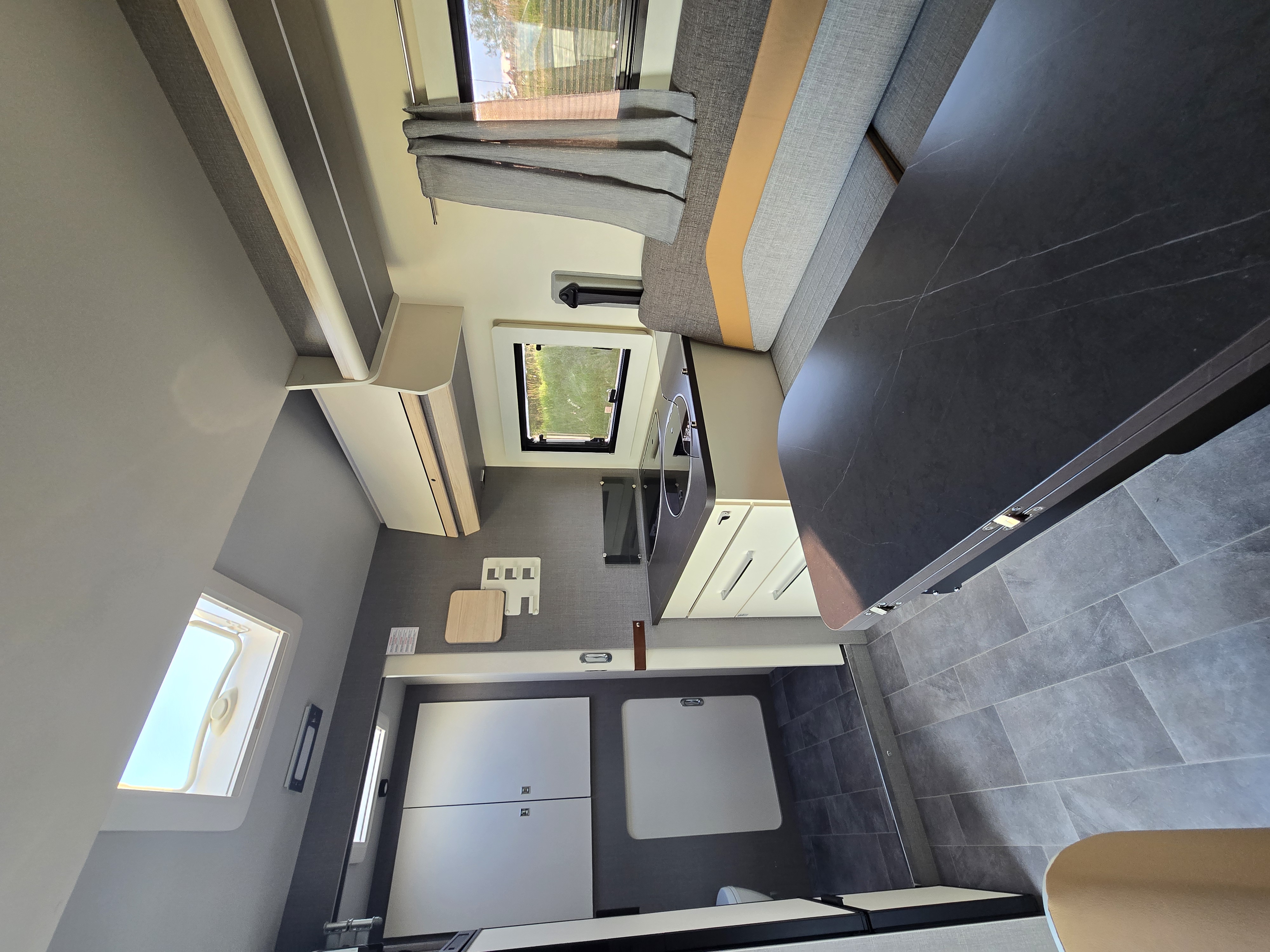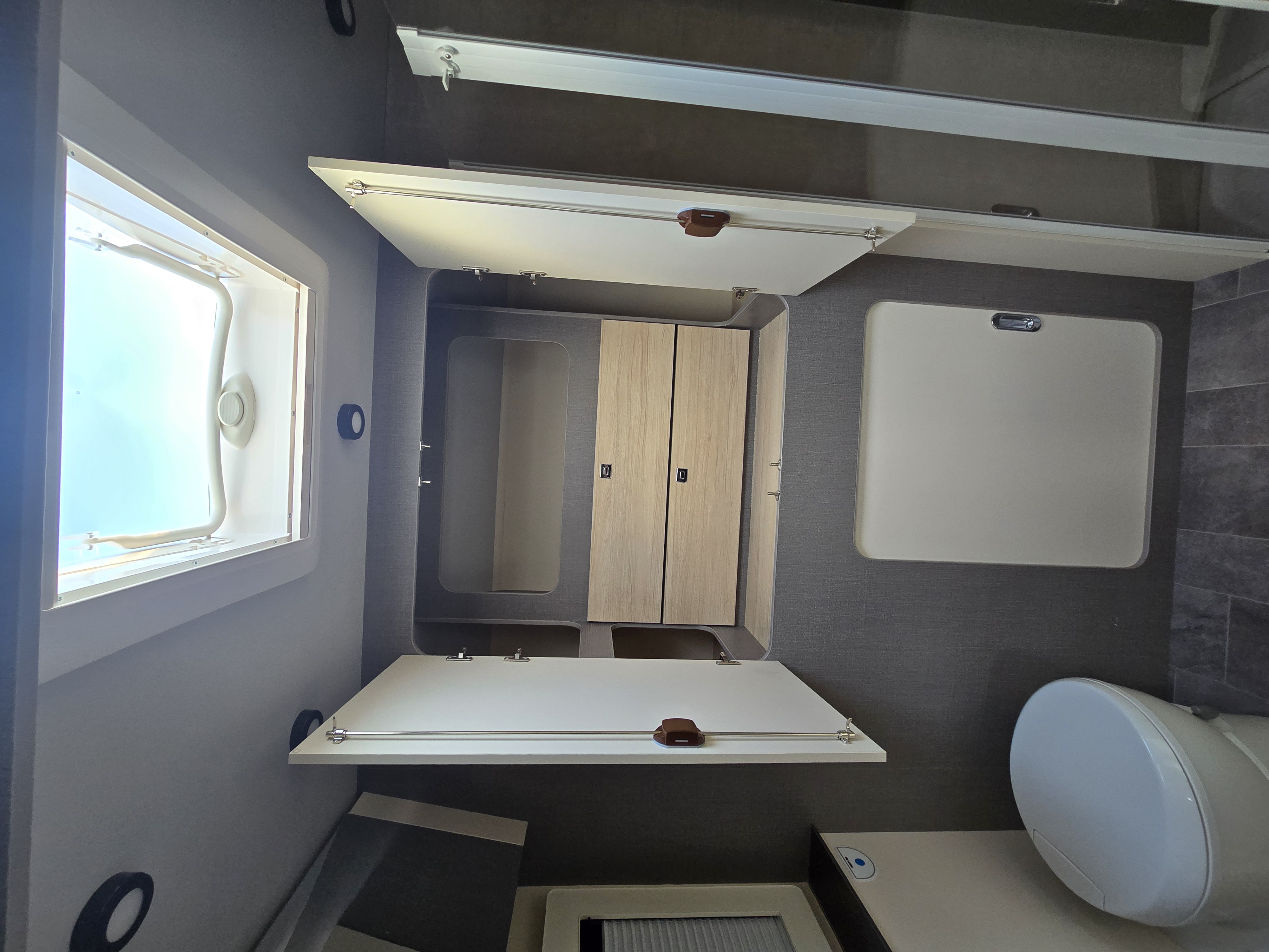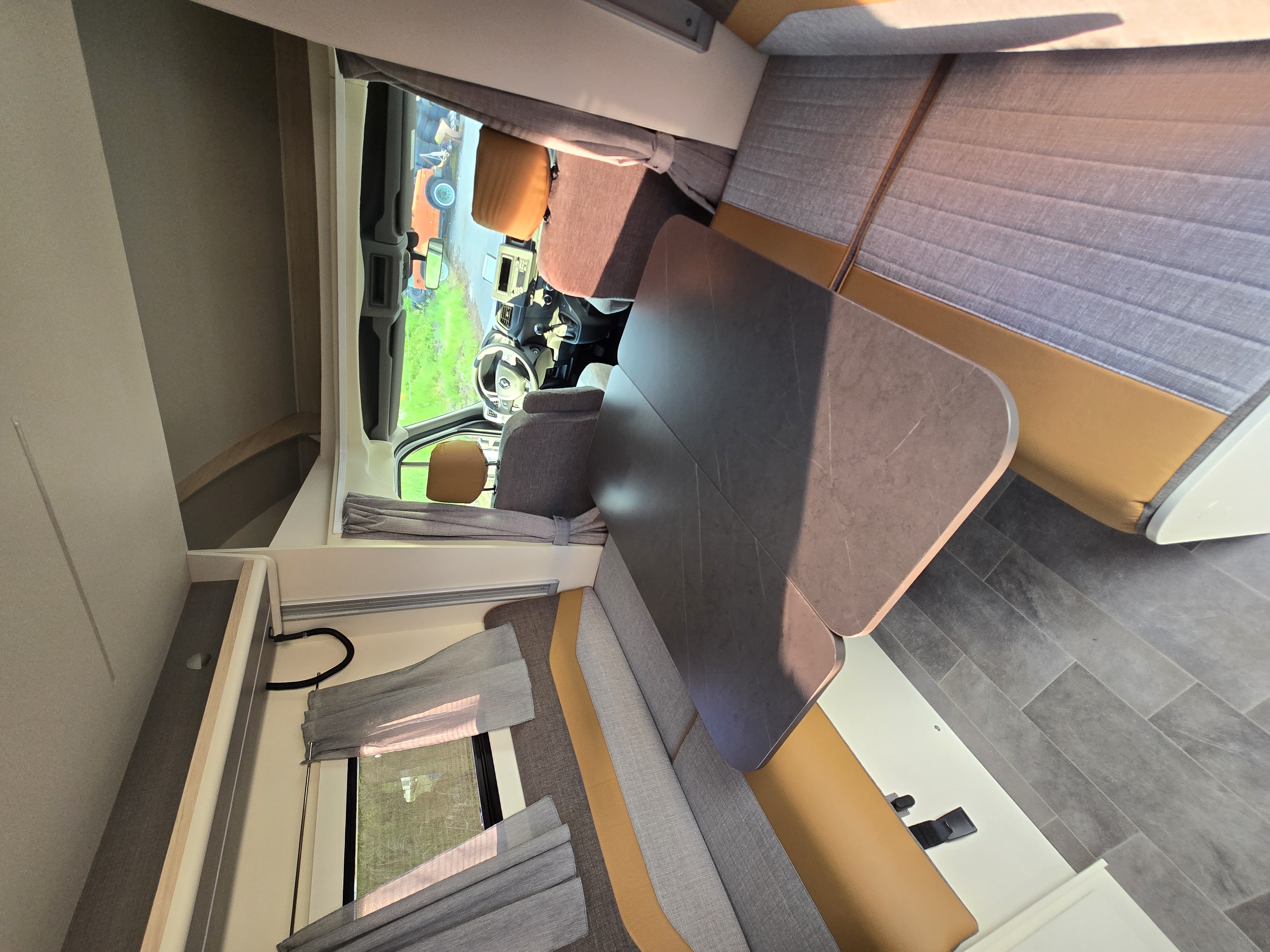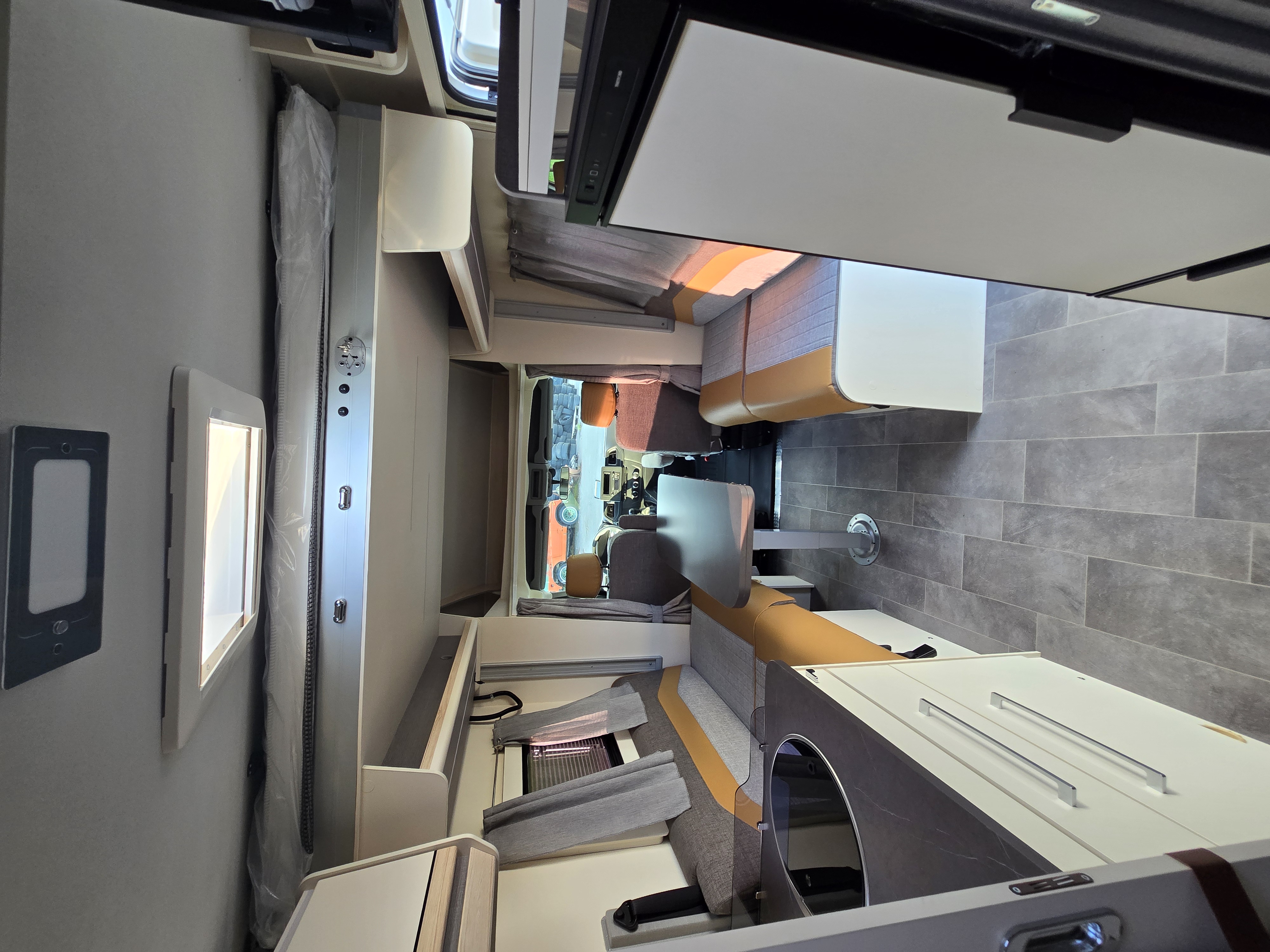 Dank einem flexiblen Hubbett und drehbaren Fahrersitzen eröffnet sich im ACT 640 ein großzügiger Wohnraum. Der flexible Schlafbereich für bis zu vier Personen, der nicht wie üblich statisch den Heckbereich einnimmt, ermöglicht ein großzügiges Bad mit genügend Platz für eine Trennung zwischen Dusche und WC Dadurch entsteht auch Platz für einen großen Schrank, der für Kleidung und sonstige Utensilien ausreichend Stauraum bietet. Durch die optimale Raumaufteilung entfällt beim ACT 640 die Entscheidung zwischen wendigem Fahrzeug und großzügigem Raumgefühl.
