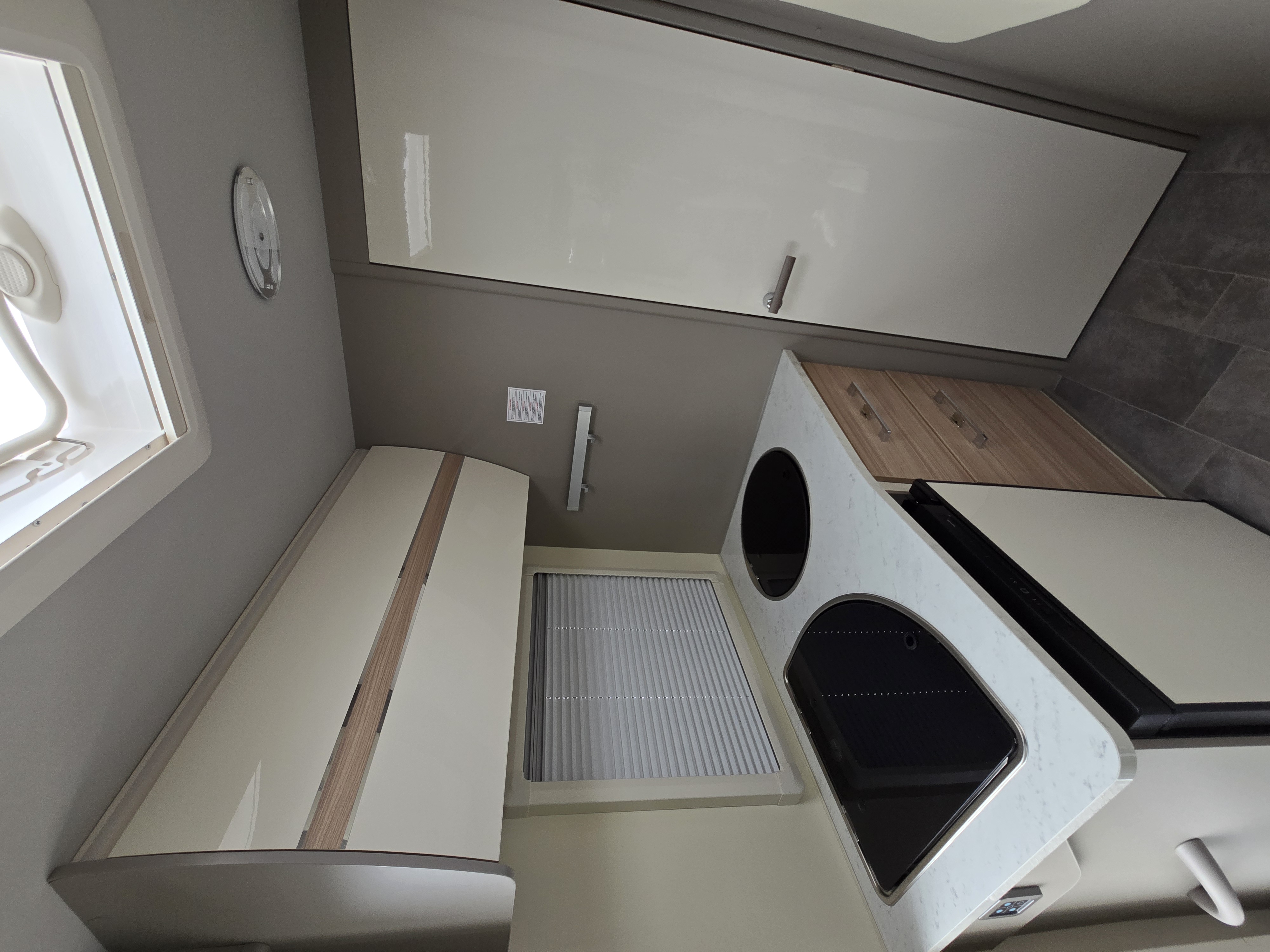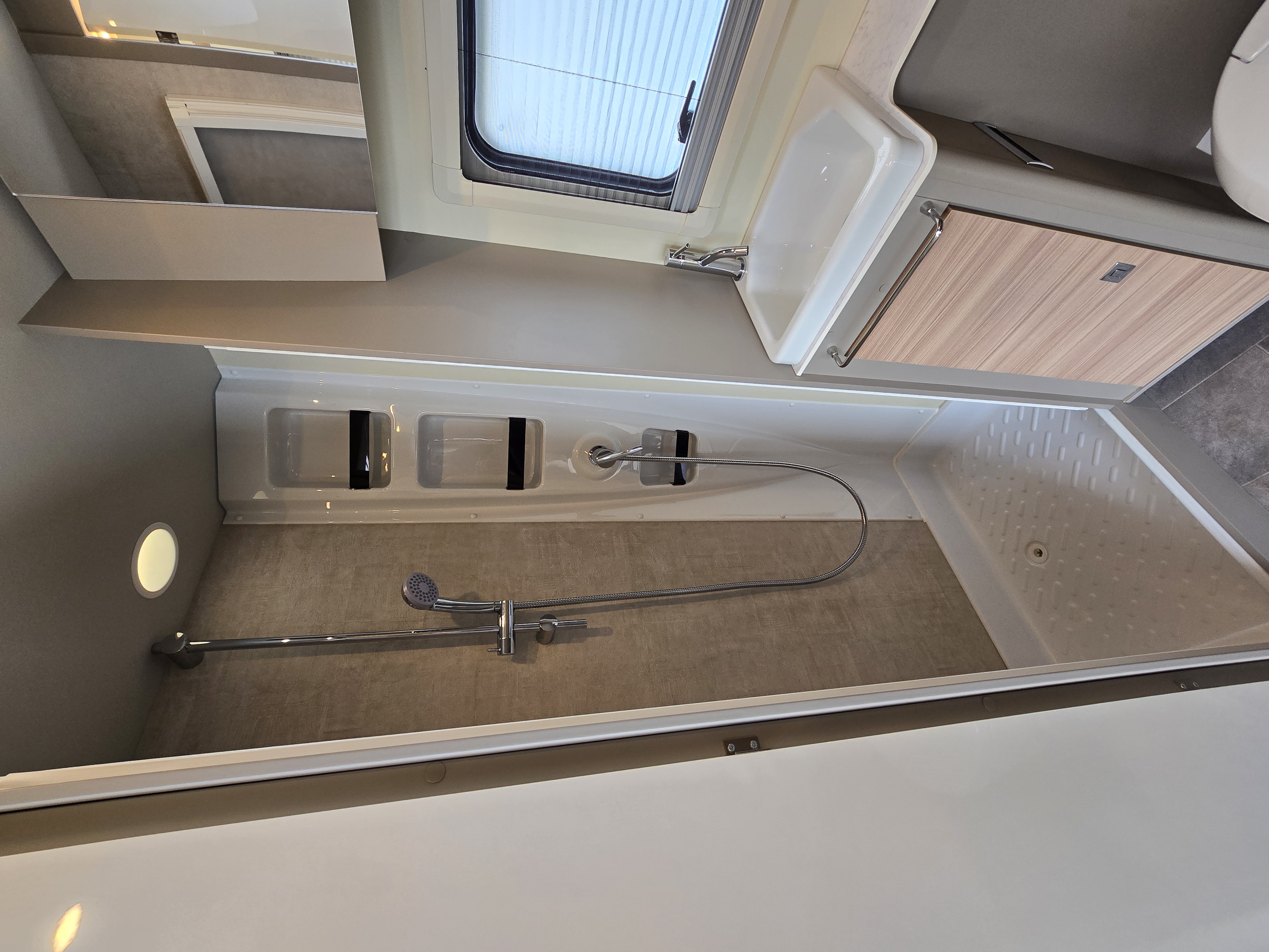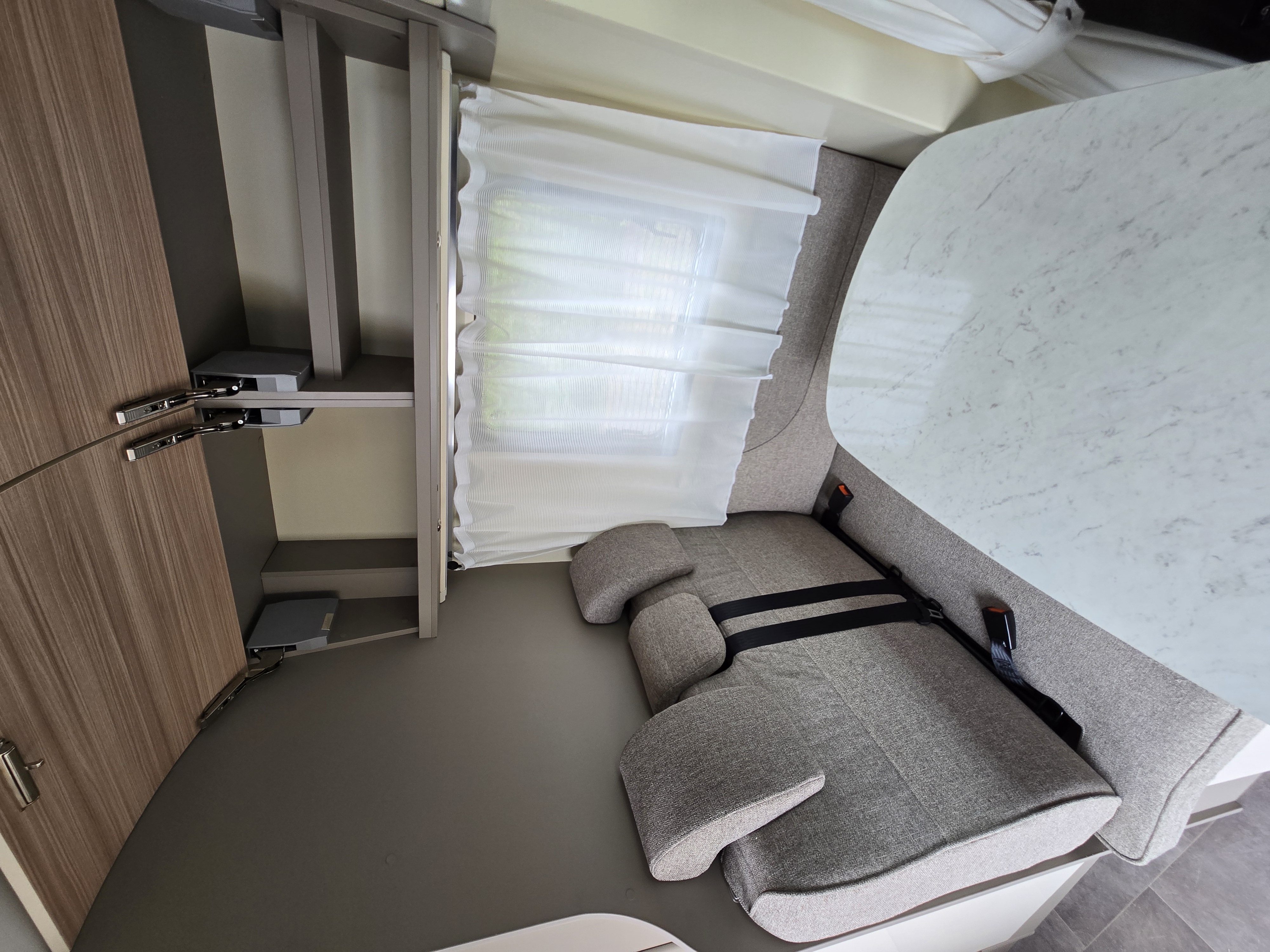Der preisgekrönte ACA 690 bietet den Reisenden, durch den abtrennbaren Schlafbereich im Heck, ihre eigene private Schlafzone und zwei weitere Schlafplätze im Alkoven. Dies ist besonders vorteilhaft für Paare, Freunde oder Familienmitglieder, die ihre individuelle Privatsphäre schätzen. Unter dem Bett im Heckbereich gibt es mehrere Fächer, die auch gerne als Wohnraum für mitreisende Vierbeiner genutzt werden können. Das große Badezimmer mit getrennter Duschwanne bietet zusammen mit dem großen Frischwassertank die Möglichkeit, einige Zeit unbeschwert autark zu reisen. Im ACA 690 können bis zu vier Personen mitfahren, durch die drehbaren Fahrersitze und durch die verschiebbare Tischplatte haben beim Essen sogar sechs Personen Platz.