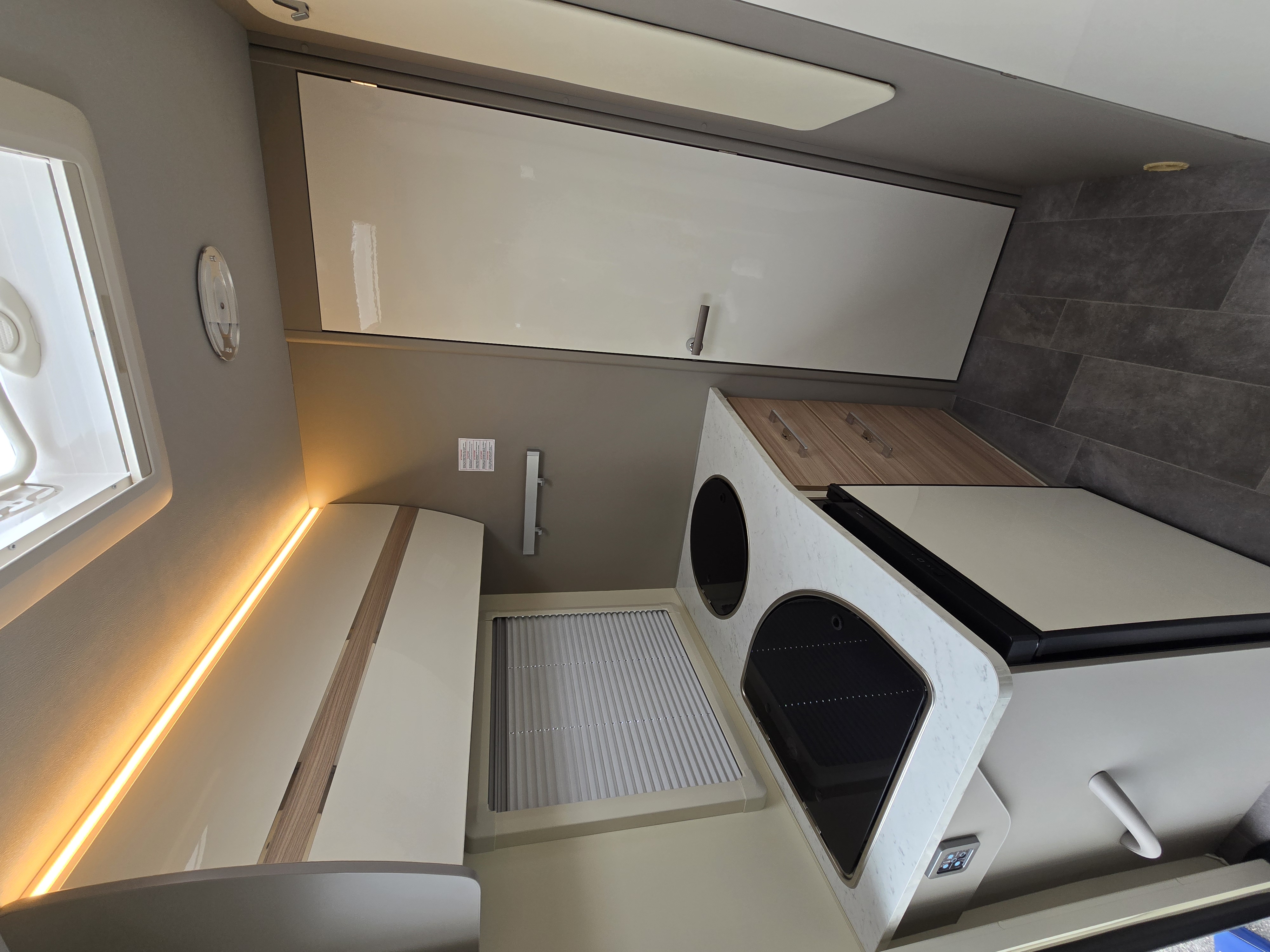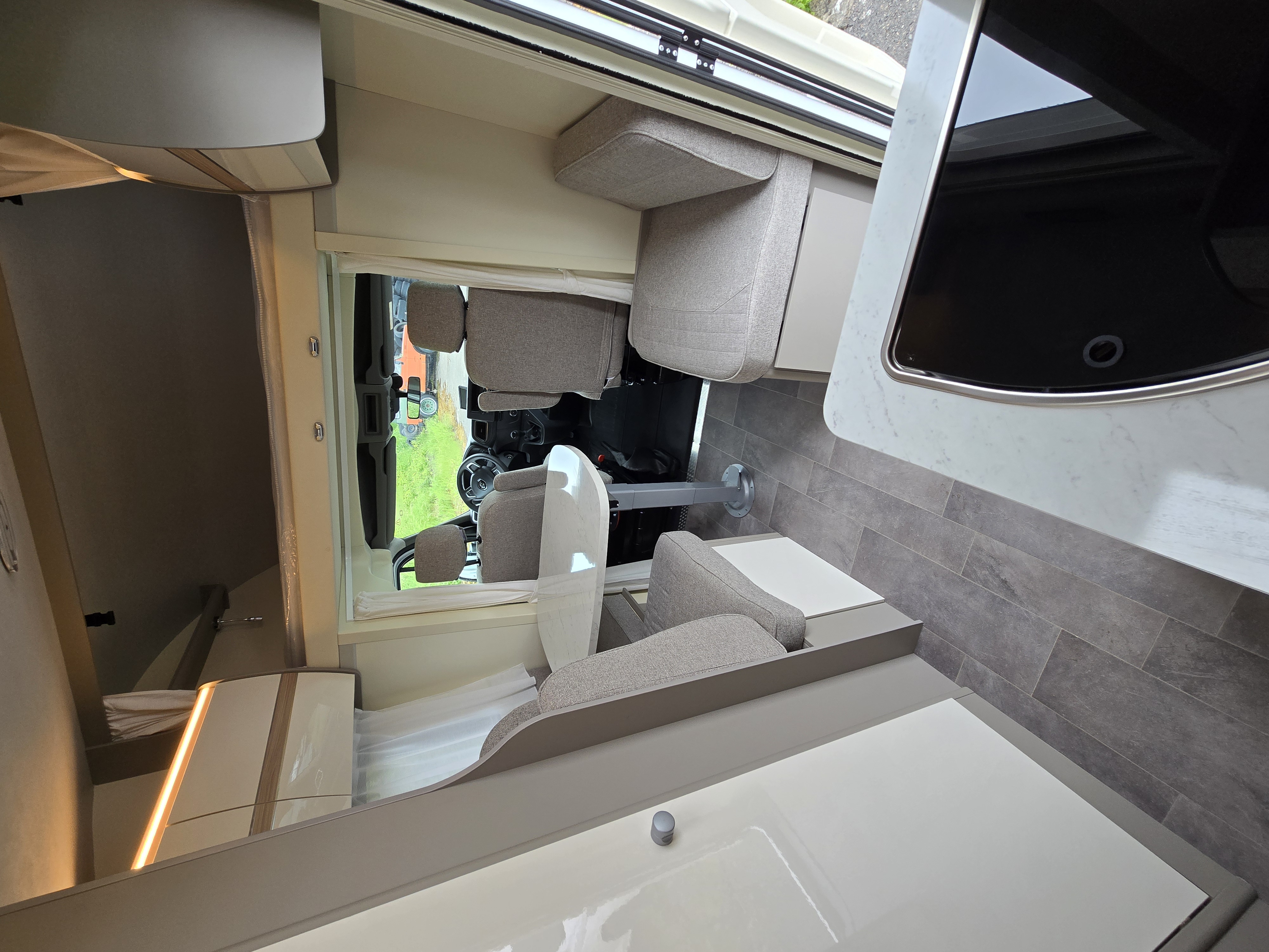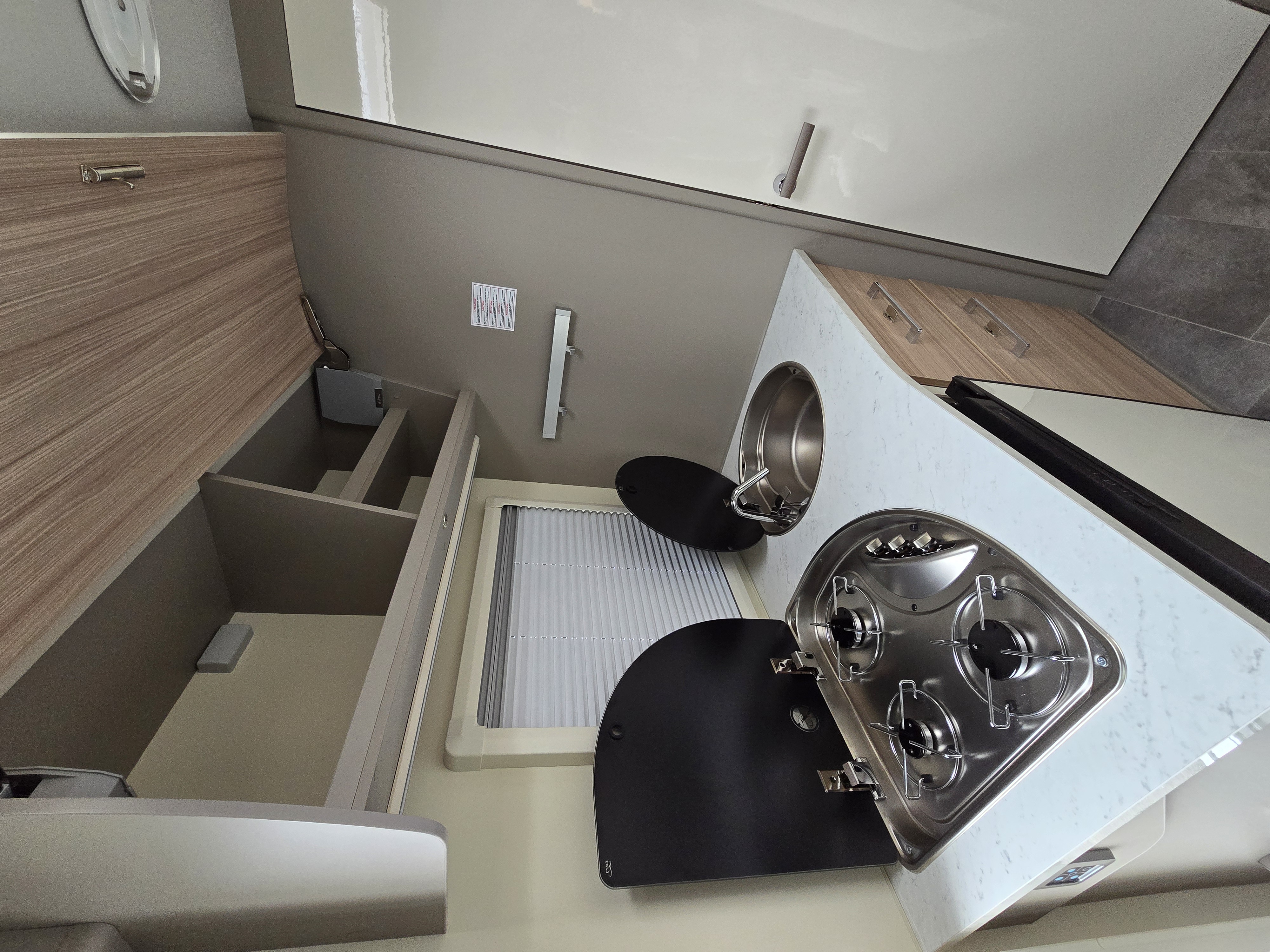 Der preisgekrönte ACA 690 bietet den Reisenden, durch den abtrennbaren Schlafbereich im Heck, ihre eigene private Schlafzone und zwei weitere Schlafplätze im Alkoven. Dies ist besonders vorteilhaft für Paare, Freunde oder Familienmitglieder, die ihre individuelle Privatsphäre schätzen. Unter dem Bett im Heckbereich gibt es mehrere Fächer, die auch gerne als Wohnraum für mitreisende Vierbeiner genutzt werden können. Das große Badezimmer mit getrennter Duschwanne bietet zusammen mit dem großen Frischwassertank die Möglichkeit, einige Zeit unbeschwert autark zu reisen. Im ACA 690 können bis zu vier Personen mitfahren, durch die drehbaren Fahrersitze und durch die verschiebbare Tischplatte haben beim Essen sogar sechs Personen Platz.