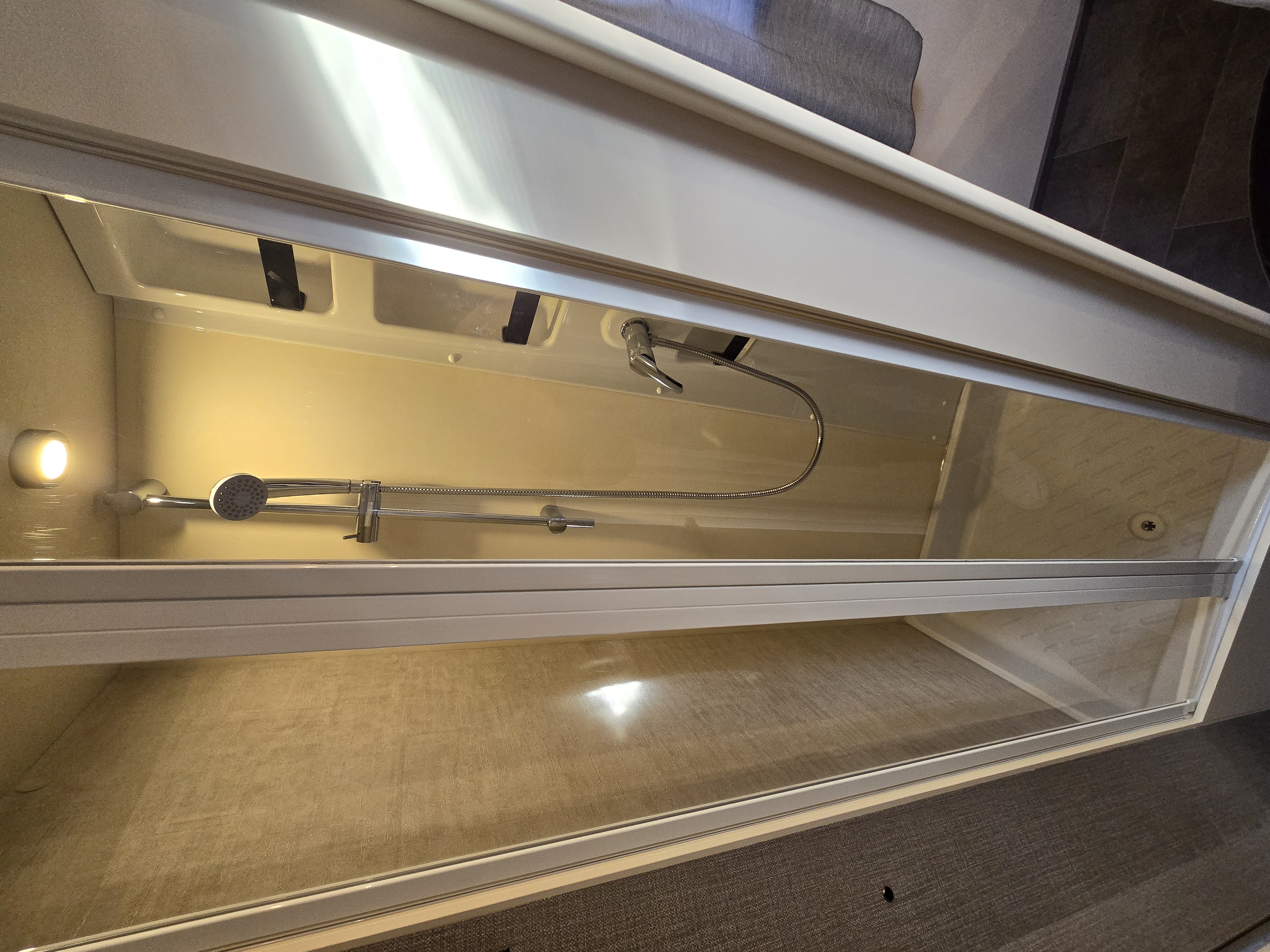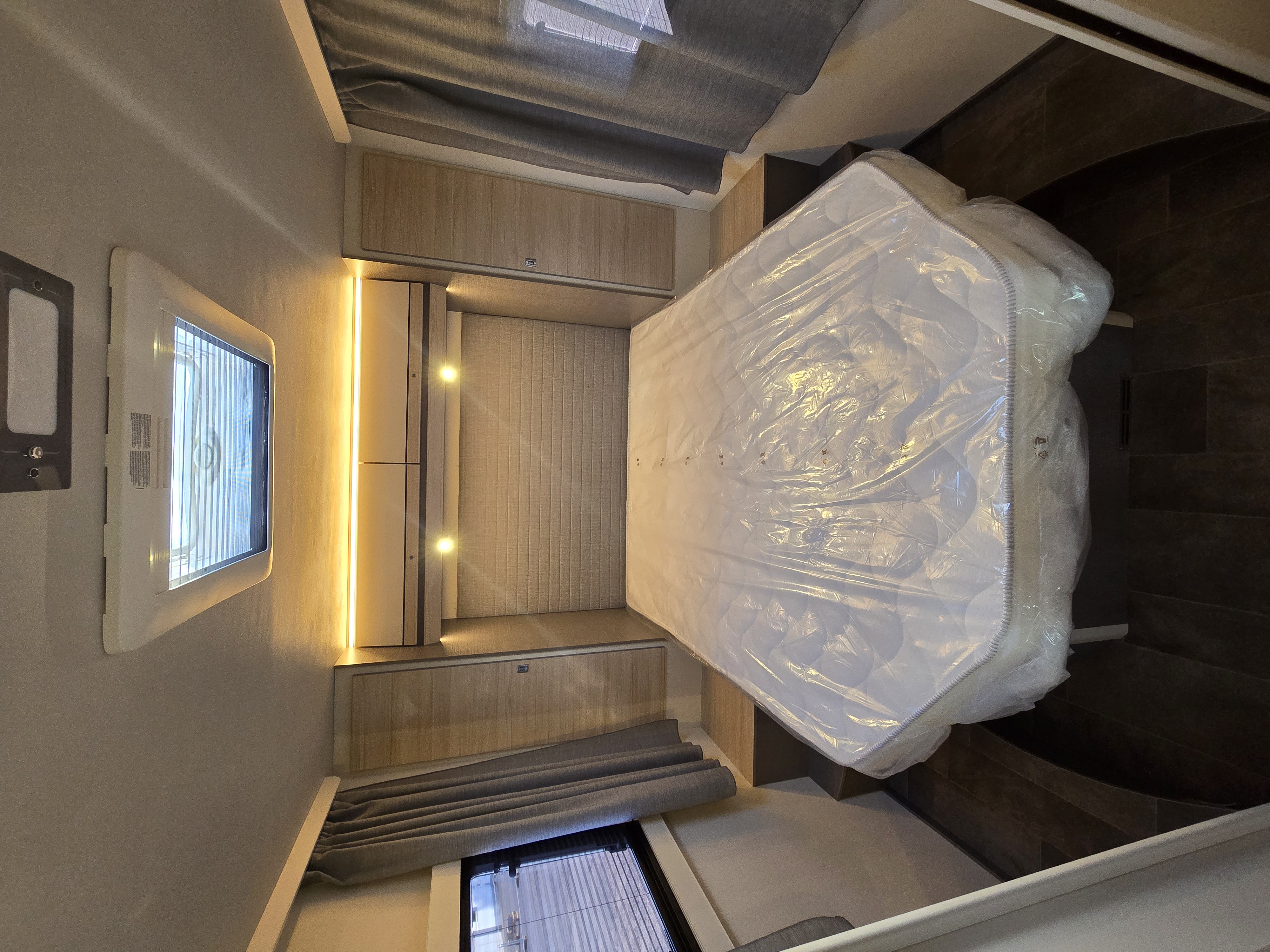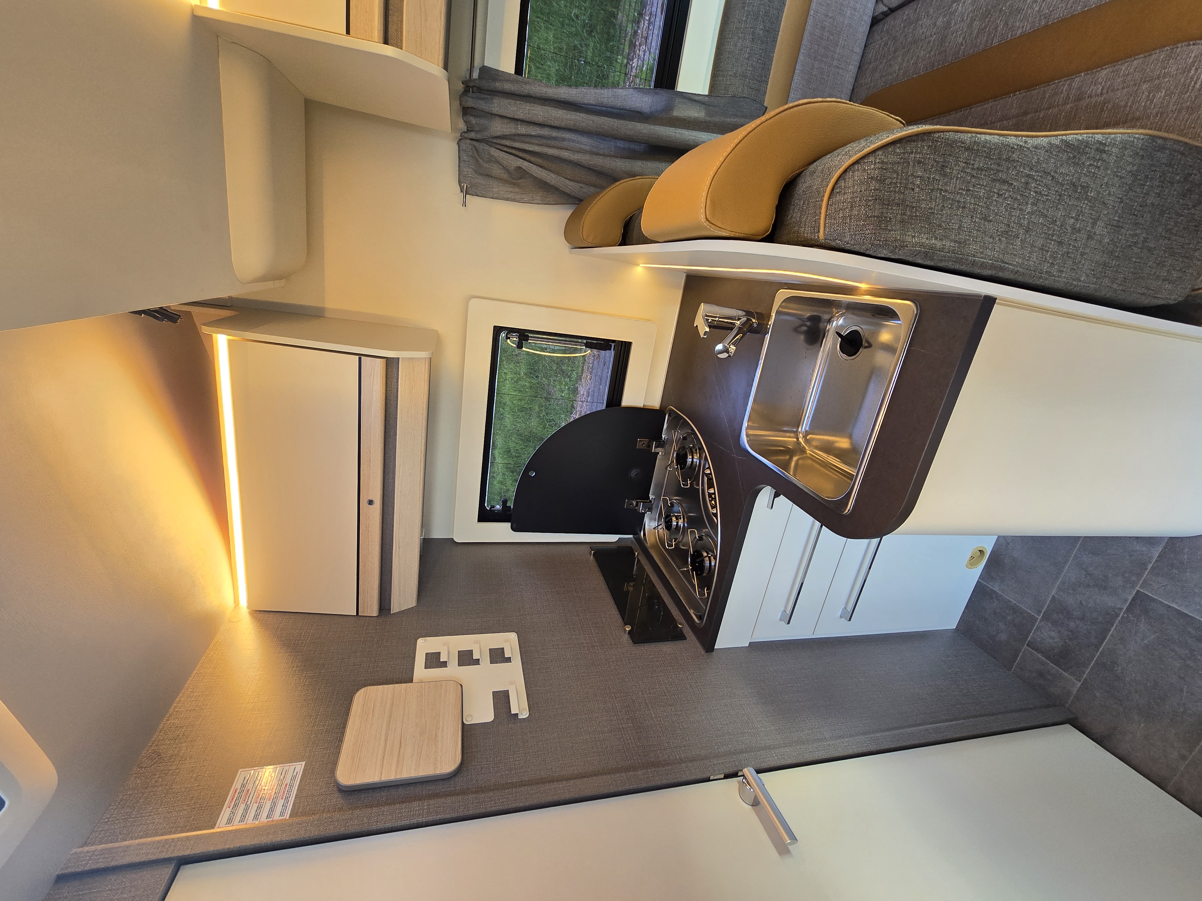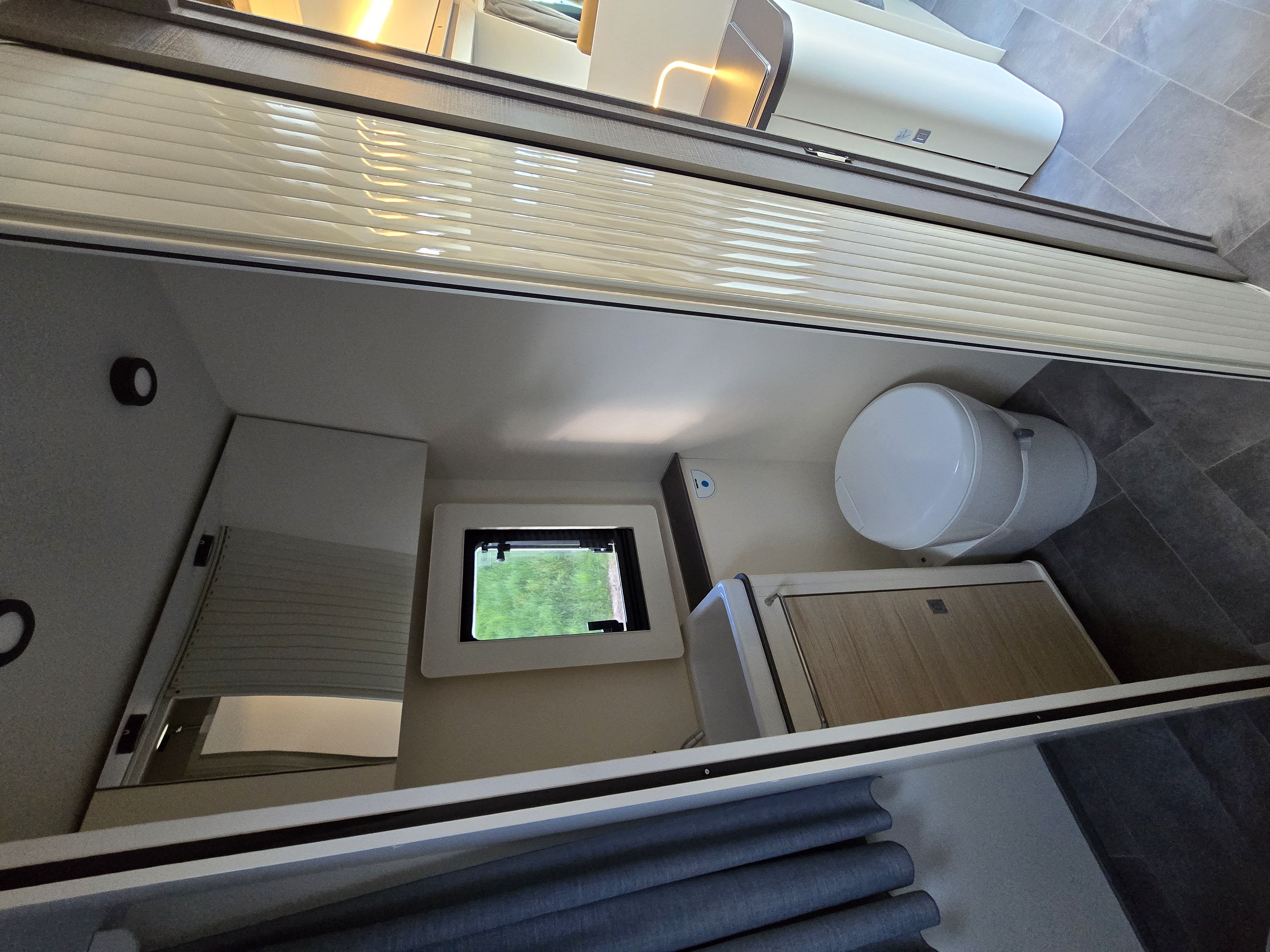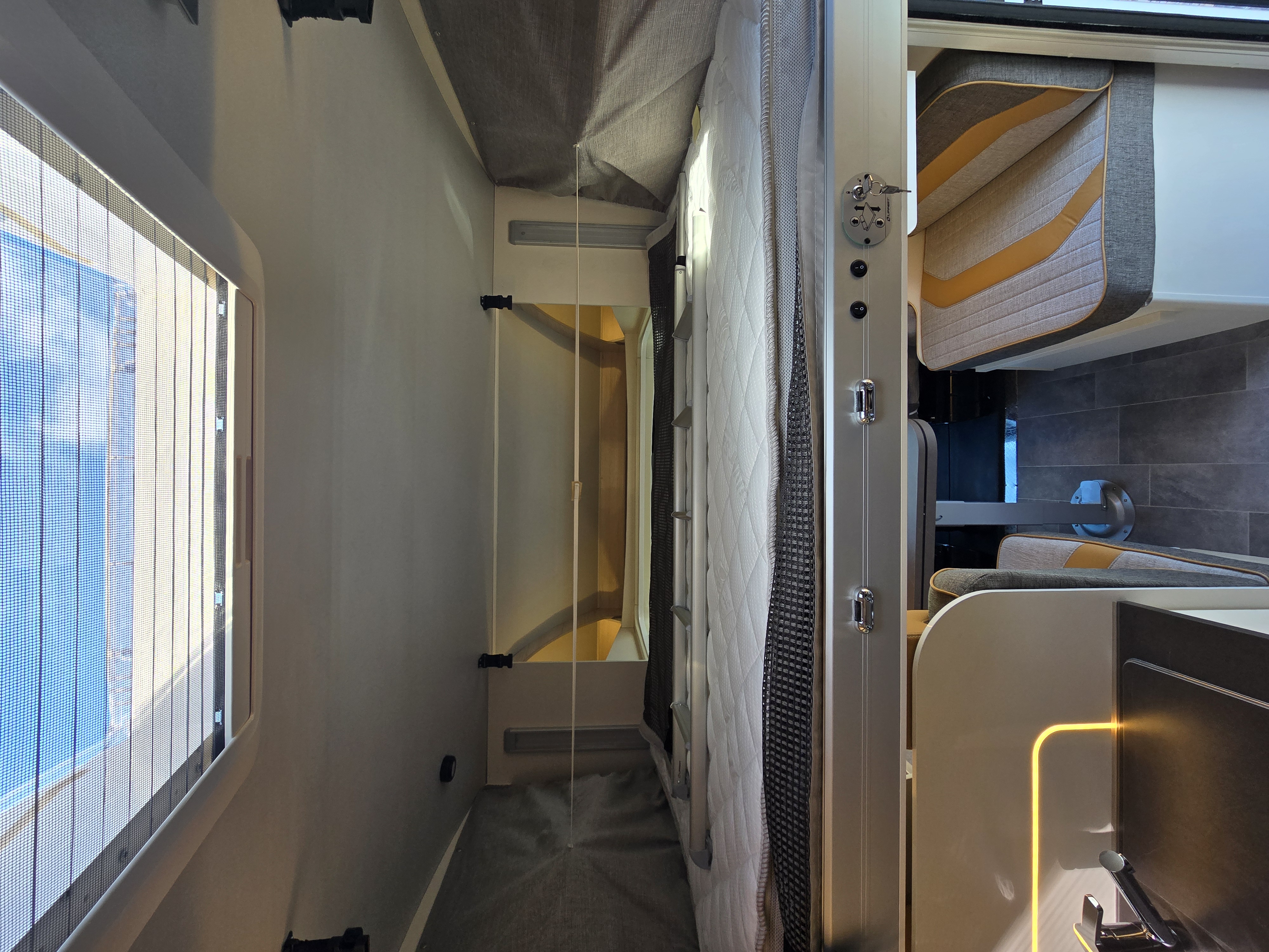 Ein Campingurlaub, in dem man sich wie zuhause fühlt und auf keinen Komfort verzichtet? Mit unserem Canada TQ absolut möglich. Er bietet ein Queensize Bett mit Nachttischen auf beiden Seiten und verwöhnt Paare oder Reisende, die gerne etwas mehr Bewegungsfreiheit haben. Das Bett ist von beiden Seiten zugänglich. Unter dem Bett offeriert ein Bettkasten die Möglichkeit, sperrige Gegenstände oder Schuhe zu verstauen, um Platz im Wohnraum zu schaffen. In diesem Wohnmobil sind die Dusche und die Toilette separat, was im Urlaub zu großer Zeitersparnis führen kann. So sind beide Räume gleichzeitig nutzbar. Der Canada TQ macht den Campingtrip zum Luxusurlaub.